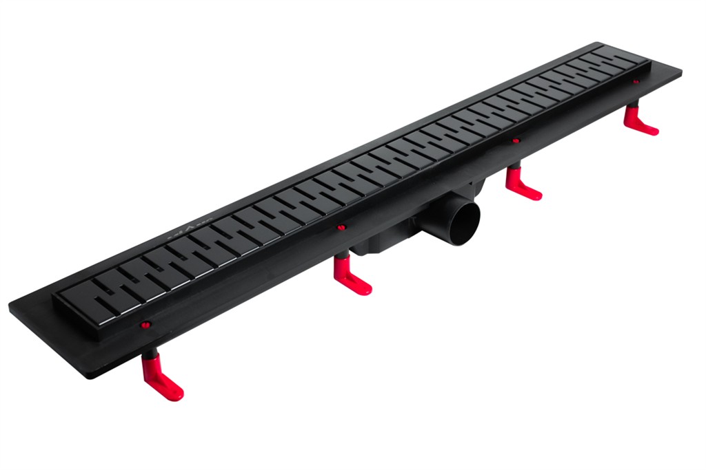 LAVILLE sprchový žľab plastový Mian s roštom MEDIUM BLACK 700mm bočný odtok DN50