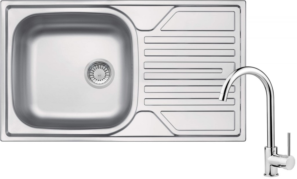 Odolný oceľový drez série LEGATO s pákocou drezovou batériou je vyrobený z vysoko kvalitnej nerezovej ocele hrúbky 0,5 mm so saténovým povrchom. Od prírody má antiseptické vlastnosti, ktoré v kombinácii s aerodynamickým dizajnom uľahčia čistenie a udržanie vysokej úrovne hygieny. Vyzerá skvele v miestnostiach zariadených v tradičnom aj modernom štýle, napríklad v minimalistických, industriálnych alebo škandinávskych kuchyniach. Praktický 1-miskový drez s odkvapkávačom je perfektným riešením v malých kuchyniach a štúdiových bytoch s kuchynským kútom. Funguje aj ako odkladacia plocha, profilovaný povrch účinne odvádza vodu stekajúcu z riadu alebo umytého jedla.