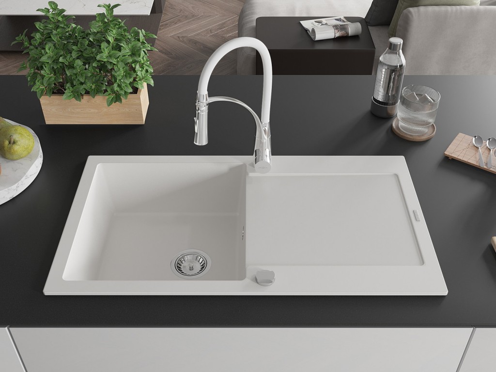 Kuchynskú batériu ľahko namontujete na drez. Tým, že je ohybná, ju jednoducho prispôsobíte k otvorenému ostrovčeku aj pod horné skrinky.