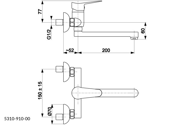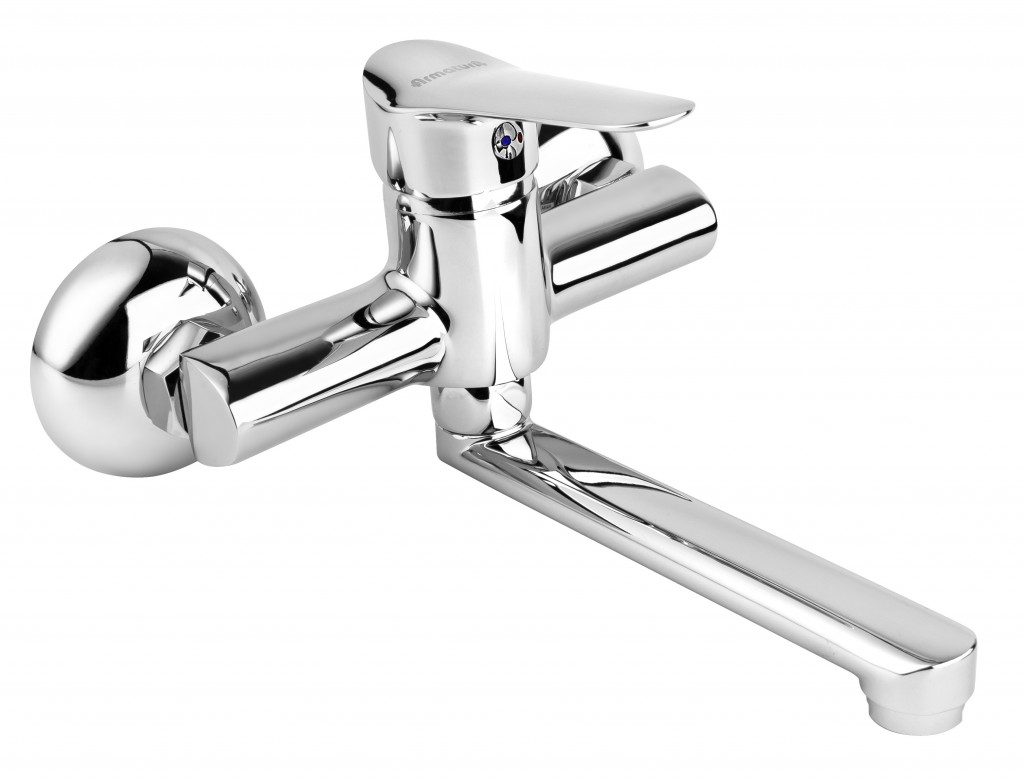 Nástenná drezová batéria LEONIT od výrobcu KFA ARMATUR A s rozstupom 150 mm. Výhodou je otočné ramienko s dĺžkou 200 mm a perlátorom.