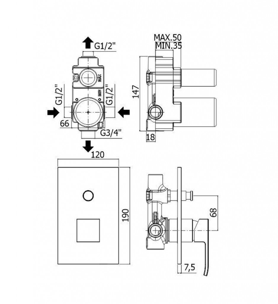 - spodné pripojenie 3/4 "G