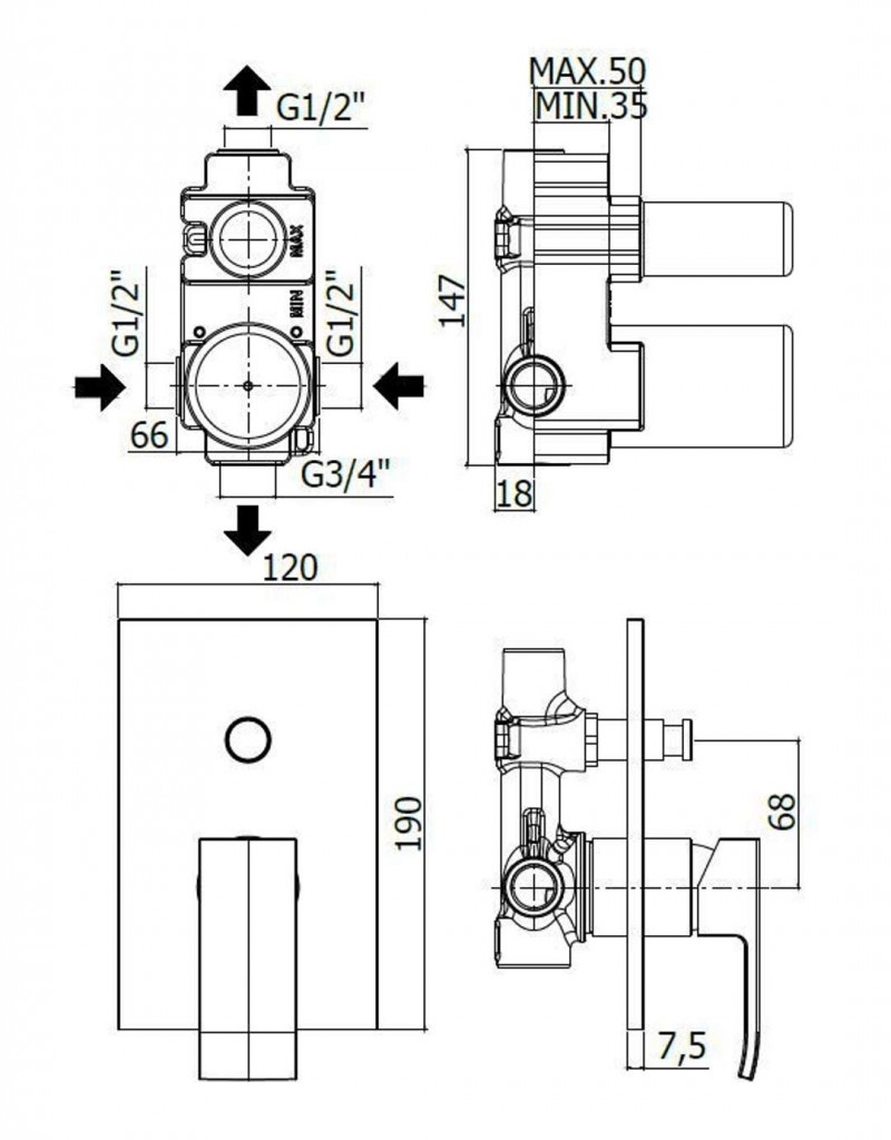 - pripojenie G 1/2 "teplá / studená a horný vývod