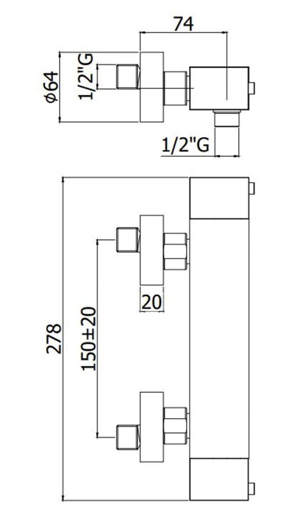 Termostatická nástenná sprchová batéria, bez sprchového príslušenstva