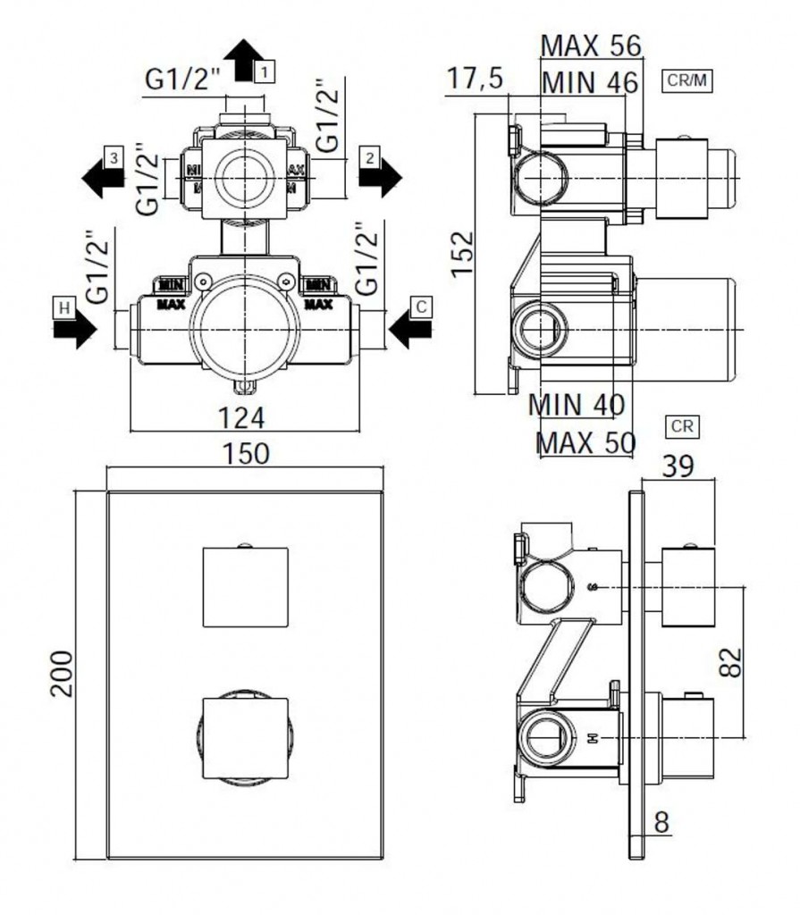Podomietková sprchová batéria s termostatom, pre 3 spotrebiče