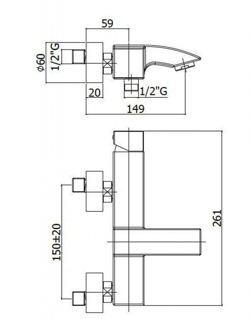 Vaňová nástenná páková batéria s prepínačom bez sprchového príslušenstva