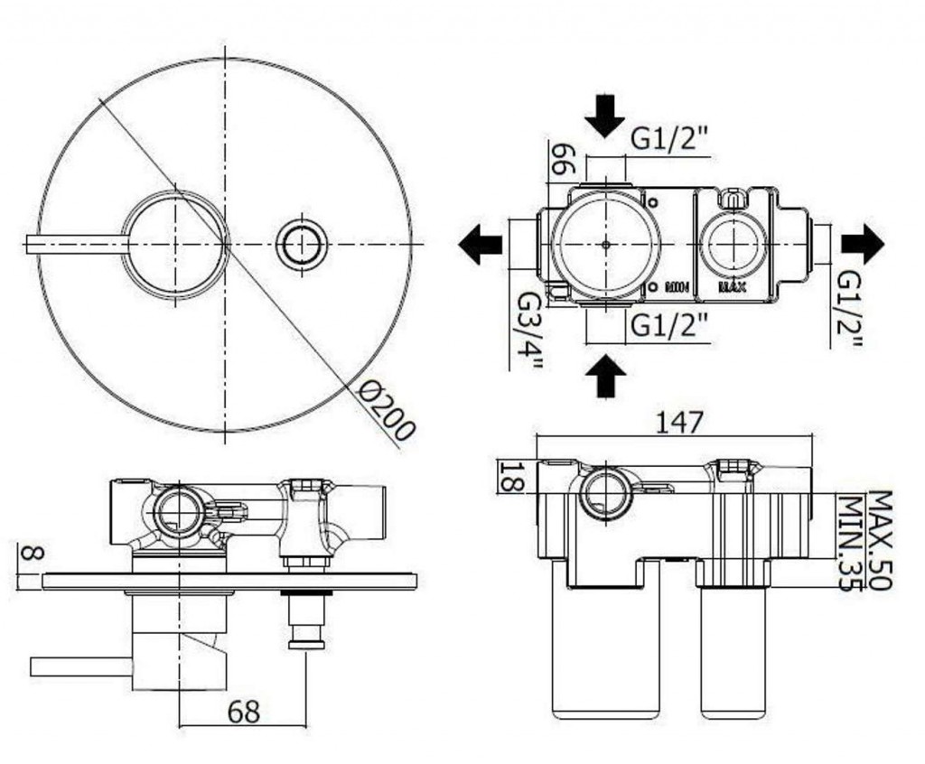 - spodné pripojenie 3/4"G