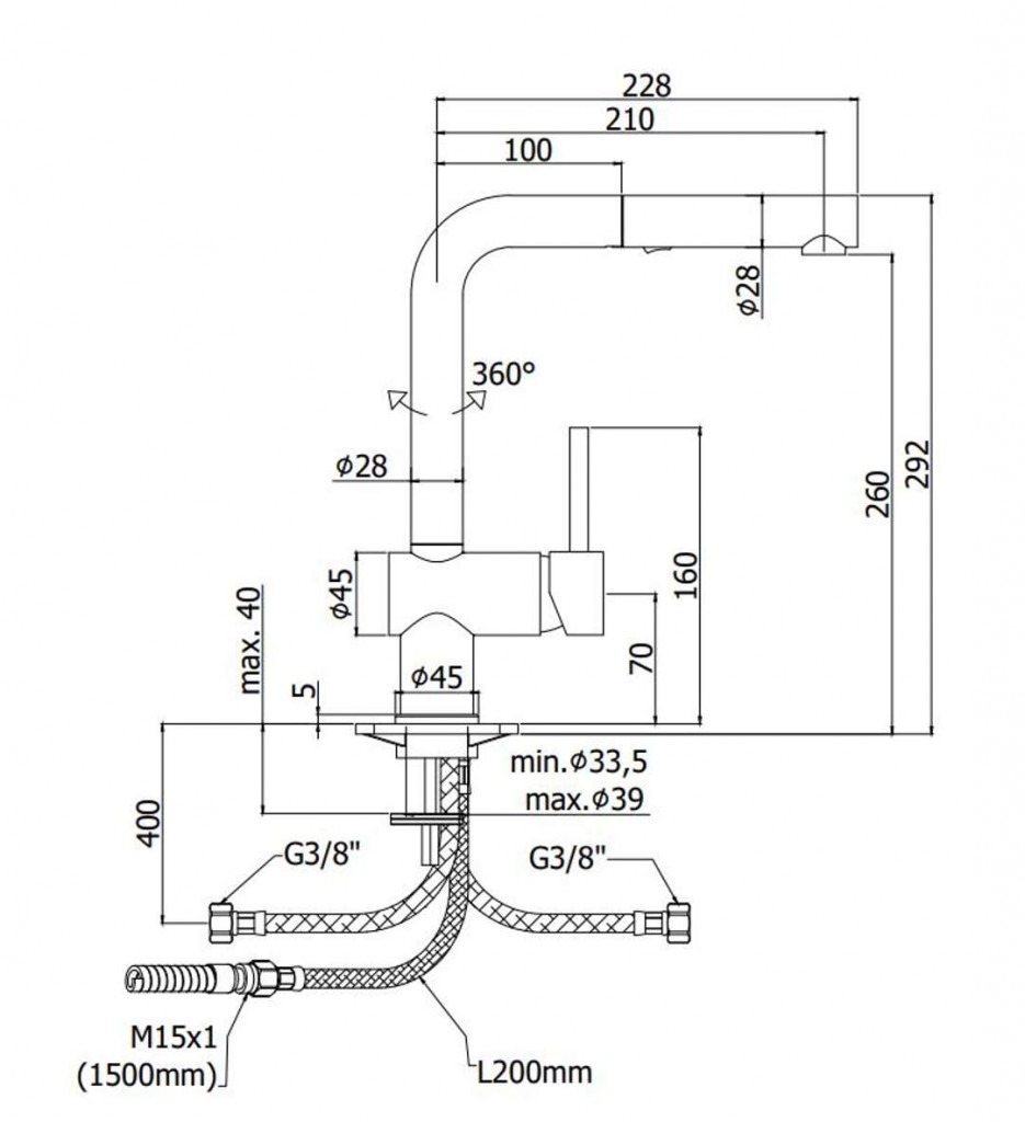 - dĺžka výtoku: 210 mm