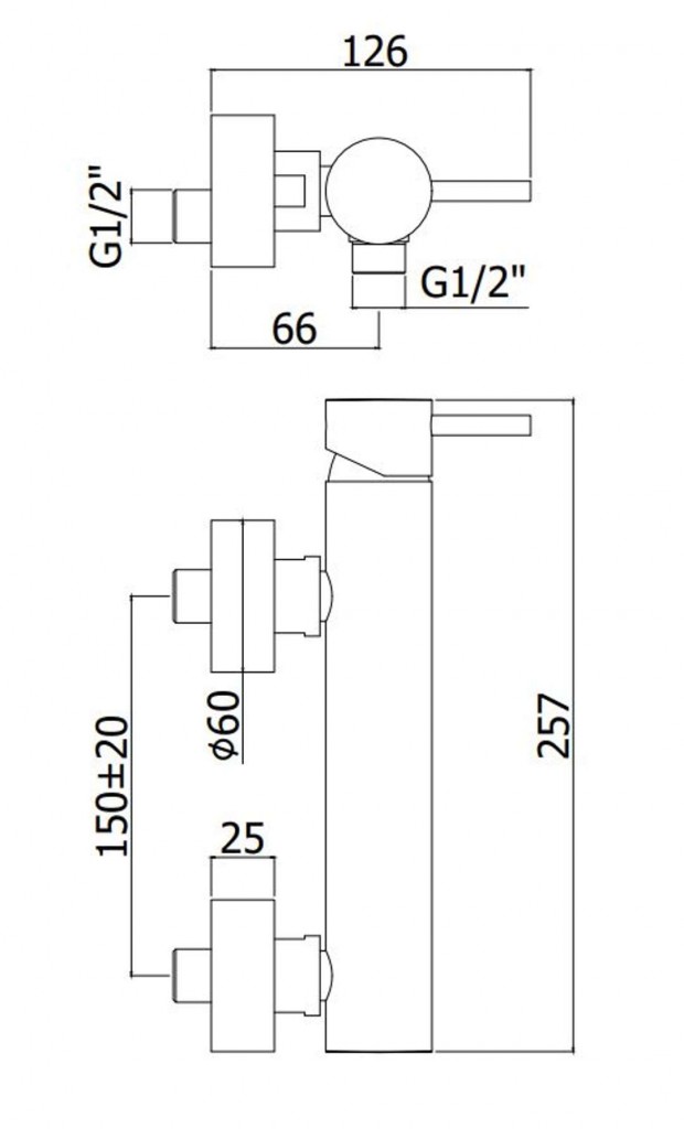 Nástenná sprchová batéria, bez príslušenstva