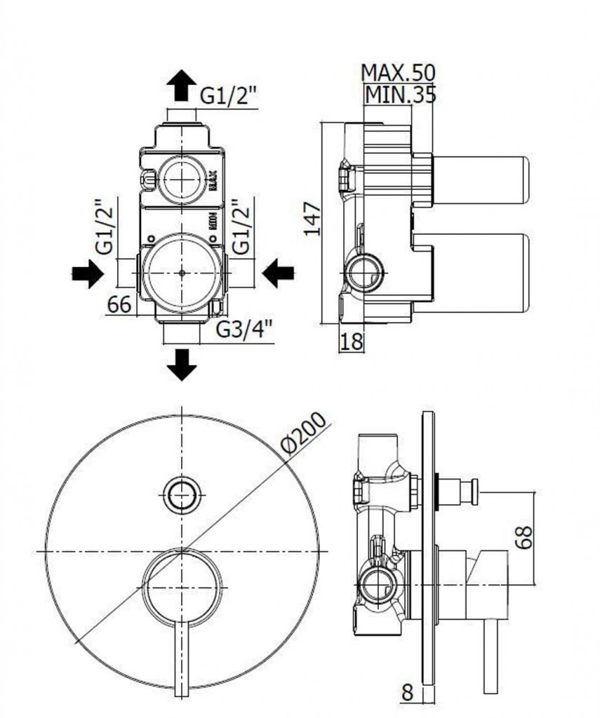 - spodné pripojenie 3/4 "G