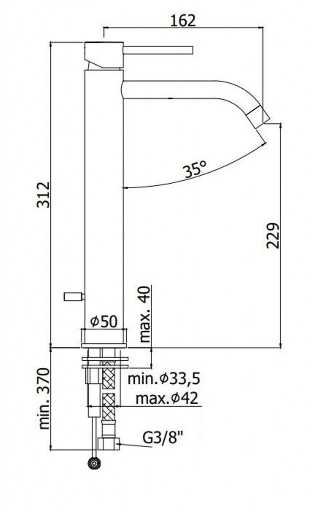 Umývadlová stojanková batéria vysoká, bez výpustu