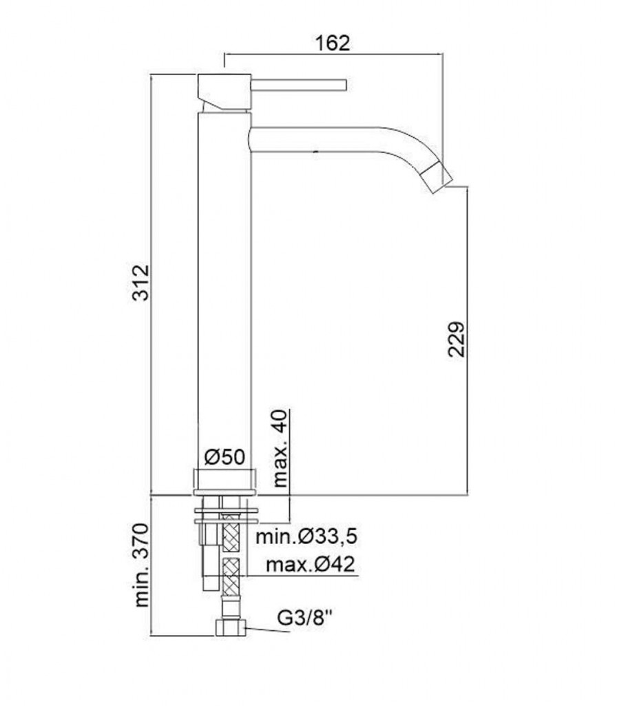 Umývadlová stojanková páková batéria vysoká bez výpustí