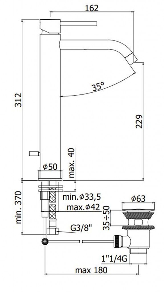 - dĺžka výtoku 162 mm