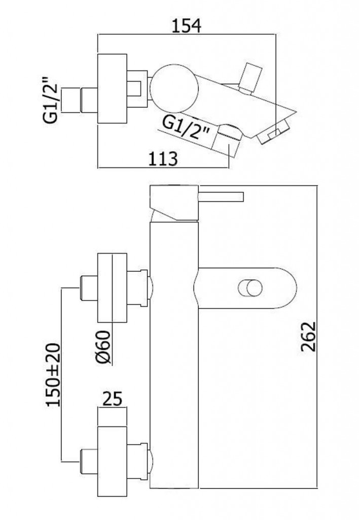 Vaňová nástenná páková batéria bez sprchového príslušenstva
