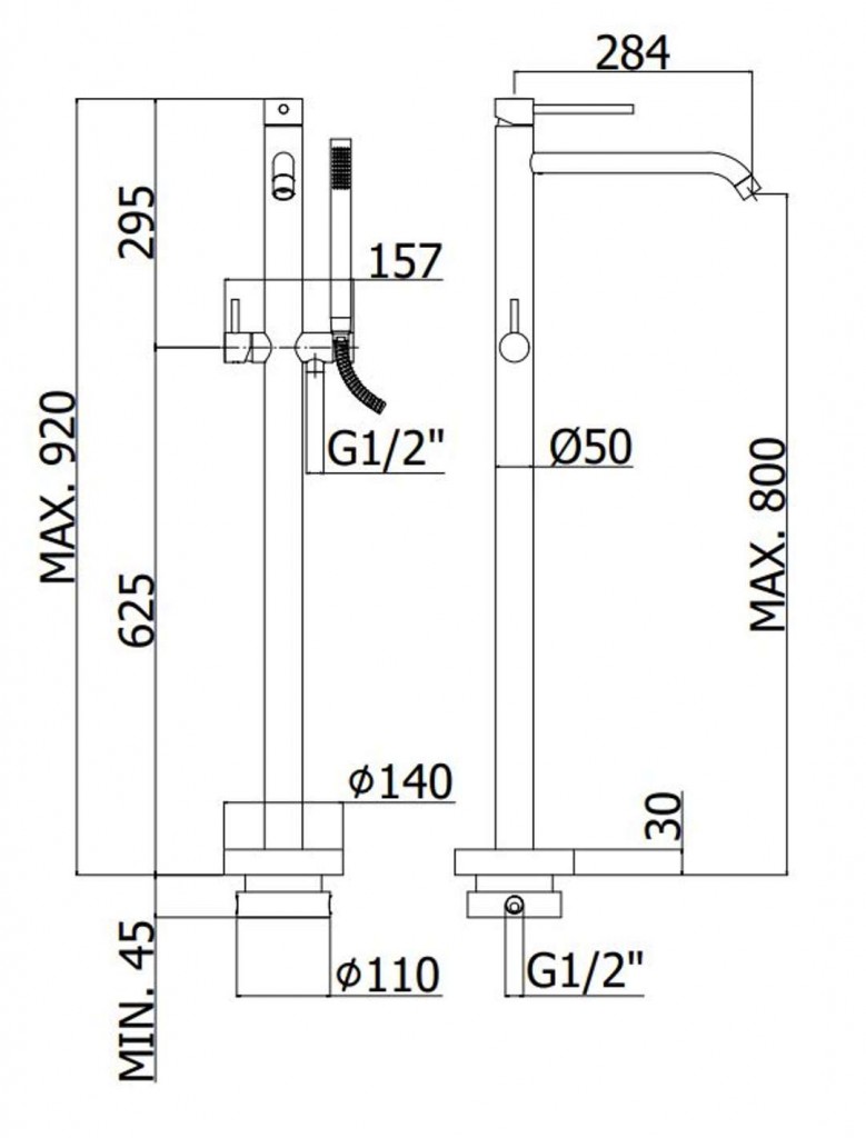 - vhodná na inštaláciu k vani stojacej voľne v priestore