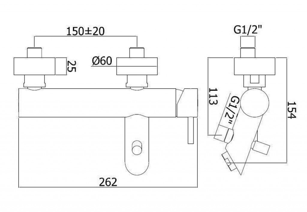 Vaňová nástenná páková batéria bez sprchového príslušenstva