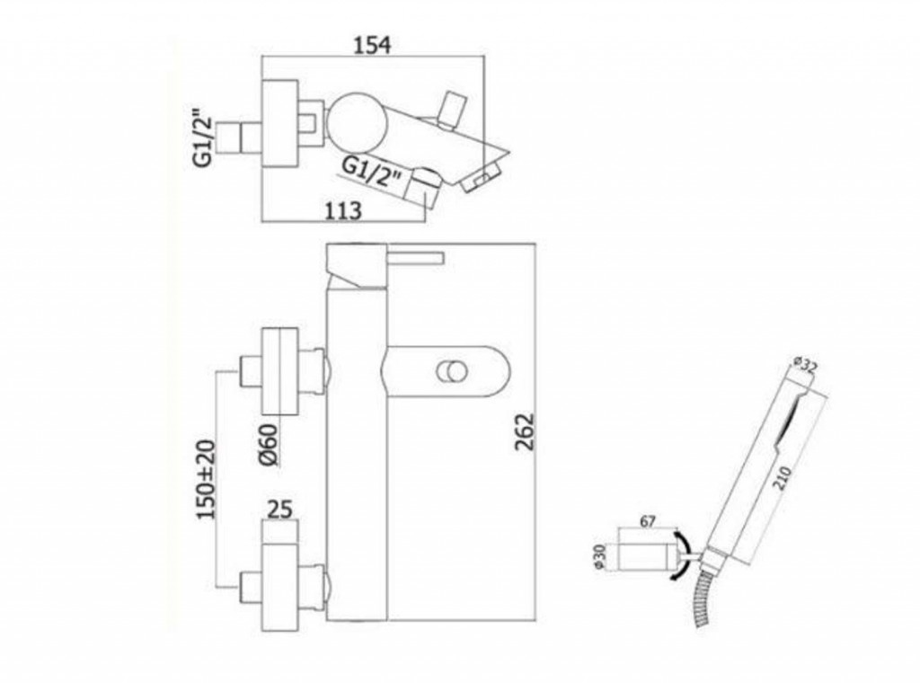 Vaňová nástenná páková batéria so sprchovacím príslušenstvom