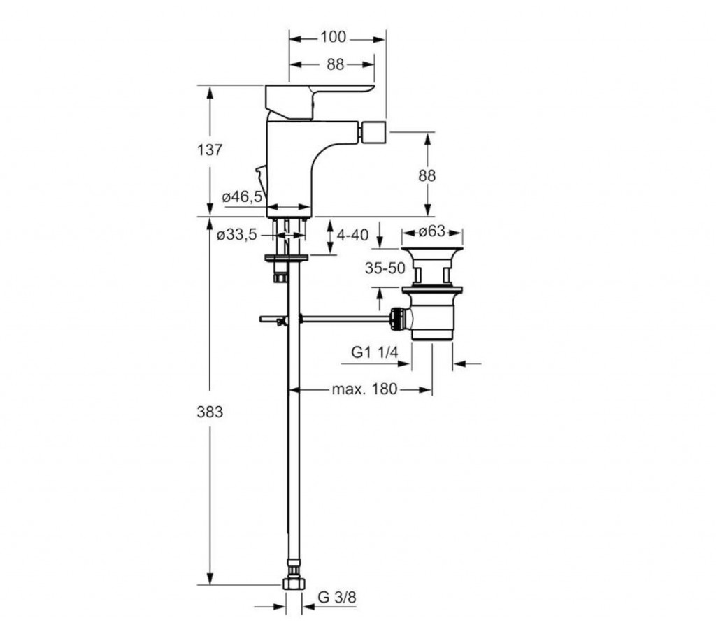 - pripojenie tlakovej hadice G 3/8