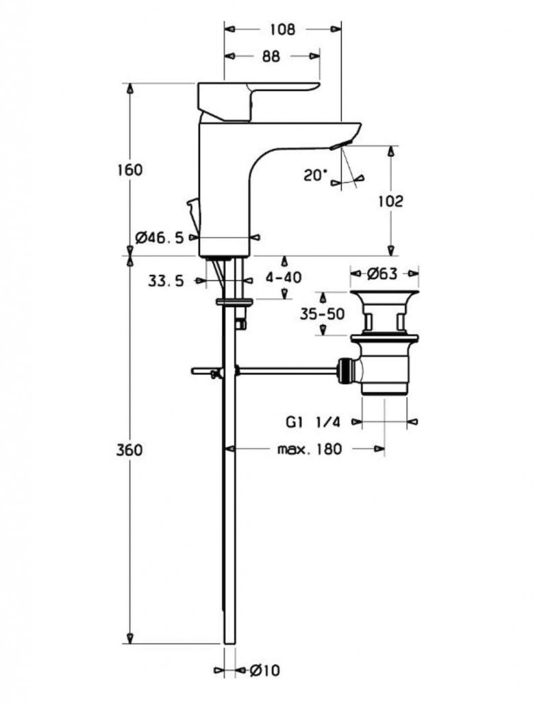 vyloženie: 108 mm