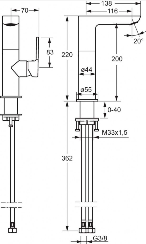 - pripojenie tlakovej hadice G 3/8