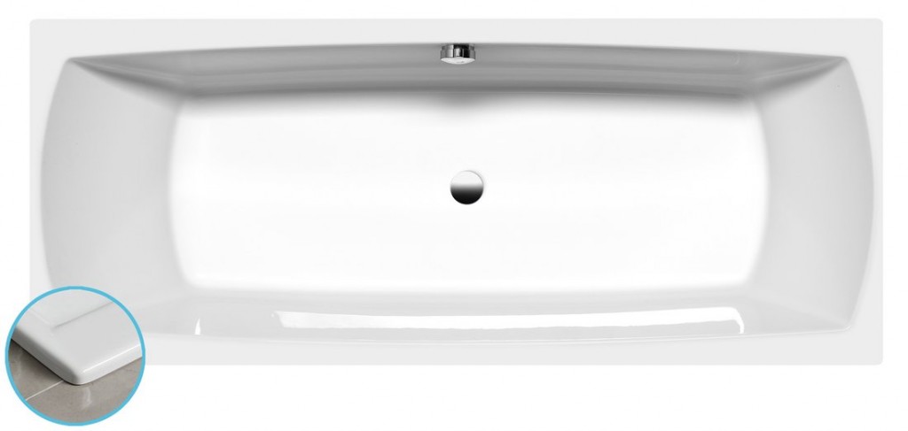 Vaňa s pohodlne tvarovanými stenami na opretie chrbta na oboch stranách a odtokom umiestneným uprostred.