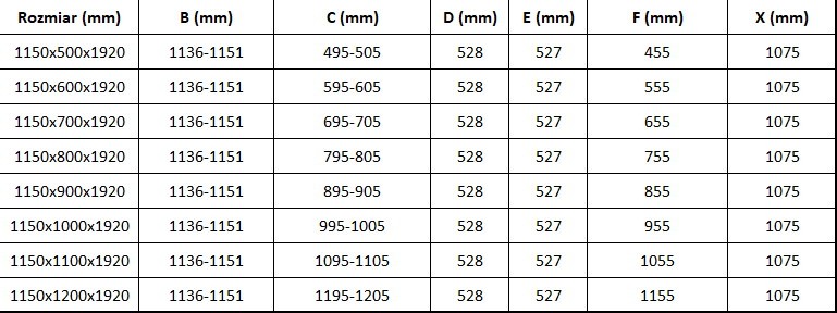 Inštalačný rozmer zalamovacích dverí do sprchového kúta je 1136-1151 mm . Vstup do sprchy budete mať 107,5 cm .