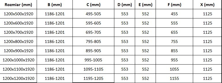 Rozmer: 120 x 90 cm (dvere 120 cm, stena 90 cm)