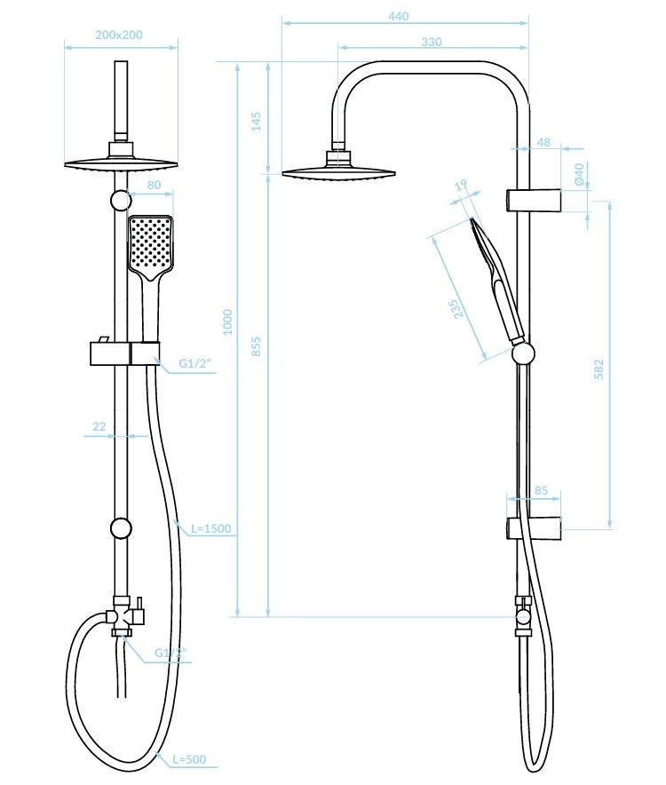 Súčasťou stĺpu je dažďová sprchová hlavica a ručná sprcha, ktoré ponúkajú komfortný prúd vody pripomínajúci jemný dážď. Obe sú vybavené systémom proti usadzovaniu vodného kameňa - silikónové trysky stačí jednoducho premnúť prsty a vodný kameň sa ľahko odstráni.