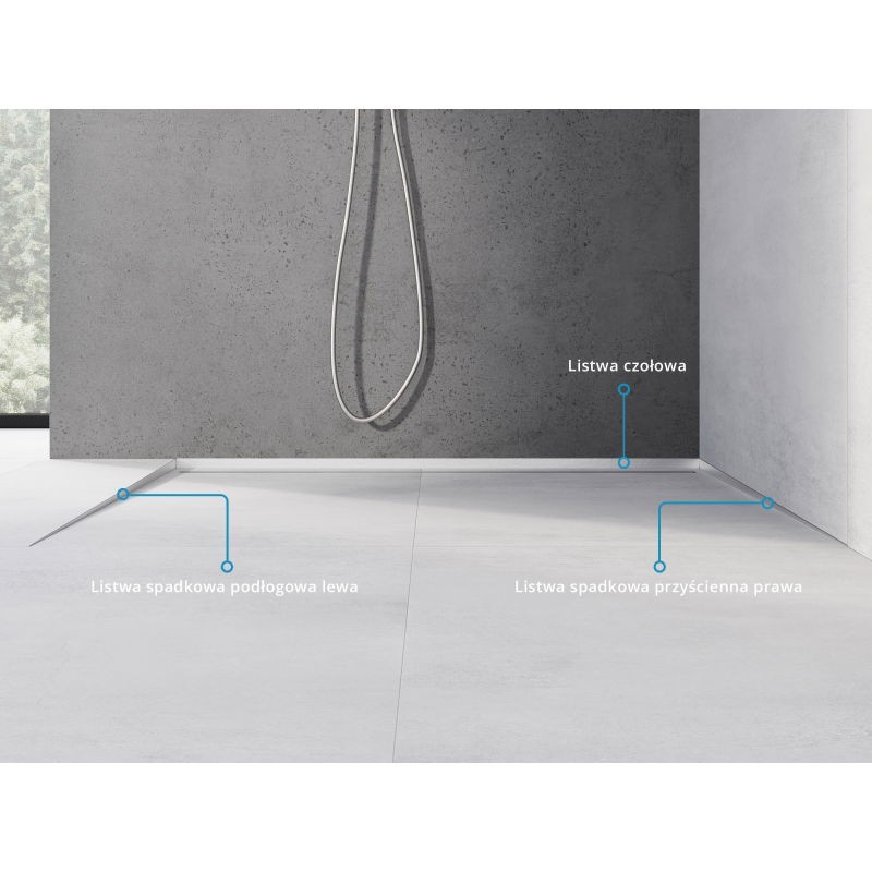 Špecifikácia produktu: Materiál: Nerezová oceľ AISI 304 Dĺžka: 180 cm Výška: 12-30 mm Povrchová úprava: Nerez Strana: Ľavá Odolná voči vlhkosti, korózii a mechanickému poškodeniu Možnosť svojpomocne skrátenie lišty na požadovanú dĺžku Zakrýva nevzhľadné konce podláh vytvára jednostranný sklon k líniovému odtoku bez nutnosti vytvárania tzv. obálky
