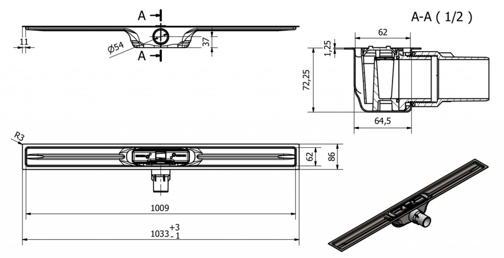 Sprchový žľab je vyrobený z jedného kusu nerezovej ocele bez zvarov, neobsahuje žiadne spoje a je možné tak veľmi jednoducho čistiť. Elegantne si poradí s vodou aj vo Vašom bezbariérovom sprchovacom kúte bez nutnosti montáže sprchovej vaničky alebo hydroizolačného náteru pod dlažbou.