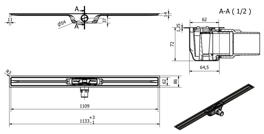 Sprchový žľab je vyrobený z jedného kusu nerezovej ocele bez zvarov, neobsahuje žiadne spoje a je možné tak veľmi jednoducho čistiť. Elegantne si poradí s vodou aj vo Vašom bezbariérovom sprchovacom kúte bez nutnosti montáže sprchovej vaničky alebo hydroizolačného náteru pod dlažbou.
