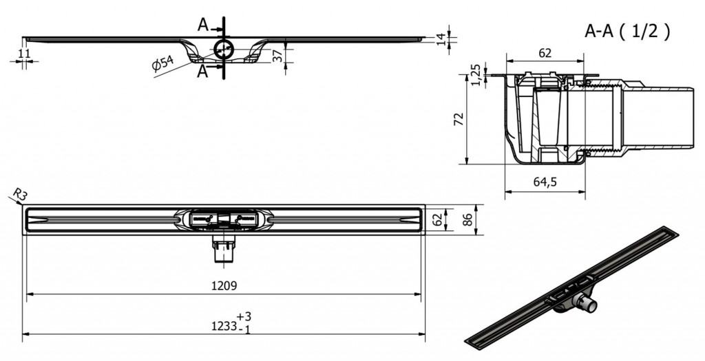 Sprchový rošt nie je súčasťou žľabu – je treba objednať samostatne.