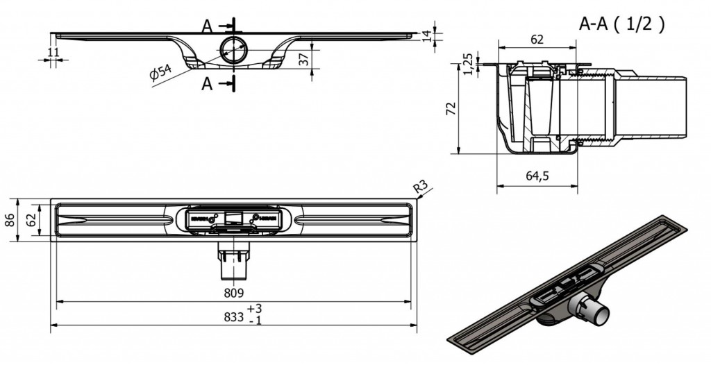 Sprchový rošt nie je súčasťou žľabu – je treba objednať samostatne.