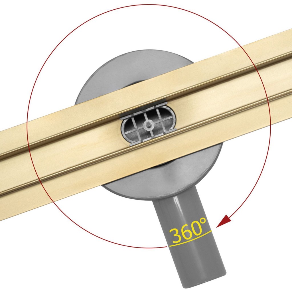 Minimalistický sprchový žľab v zlatej lesklej farbe nádherne doplní akýkoľvek štýl kúpeľne. V tmavej dlažbe vytvorí netradičný kontrast, vo svetlej dokonale zanikne. Z celého setu vidíte len jemný zlatý rámček doplnený o 1 cm široký maskovací profil. Vďaka tomu sa stane žľab prirodzenou súčasťou celého interiéru.