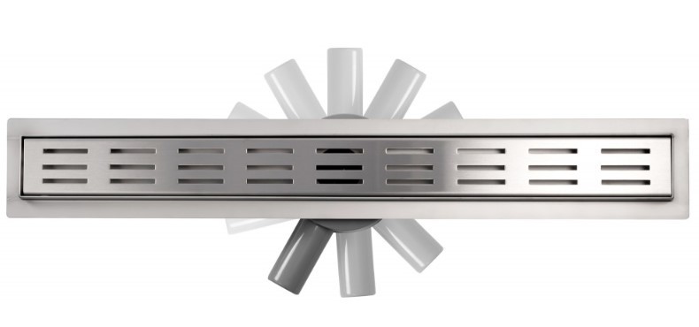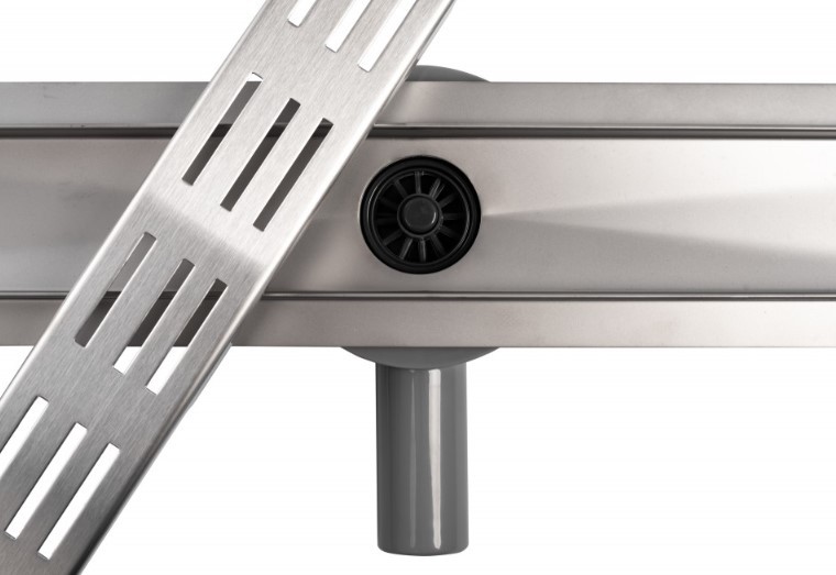 Odtokový žľab je vyrobený z nerezovej ocele AISI 304 s hrúbkou 1,2 - 1,5 mm mm, jeho súčasti je tiež vrchná dekoratívna nerezová mriežka s hrúbkou 1,5 mm ktorá je odolná proti veľkému zaťaženiu a poškriabaniu. Ďalšími výhodami tohto žľabu je vynikajúci odtok ( až 36 litrov za minútu) s možnosťou otočenia 360 st. a to aj pri silnom prúde vody. Jednoduchá je aj inštalácia a to vďaka nízkej montážnej výške (len 60-70 mm). Inštalačné nožičky odtokového žľabu umožňujú široký rozsah nastavenia výšky. Ľahko vyberateľný sifón je vybavený filtrom na lapanie nečistôt a protizápachovou prepážkou .