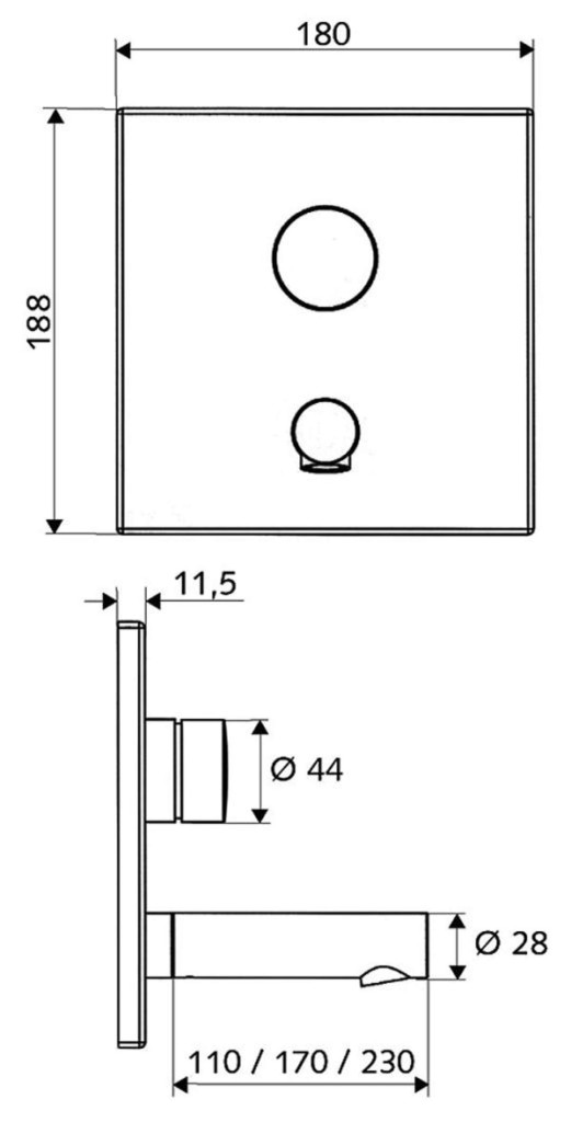 - čelný panel 188 mm x 180 mm x 11,5 mm