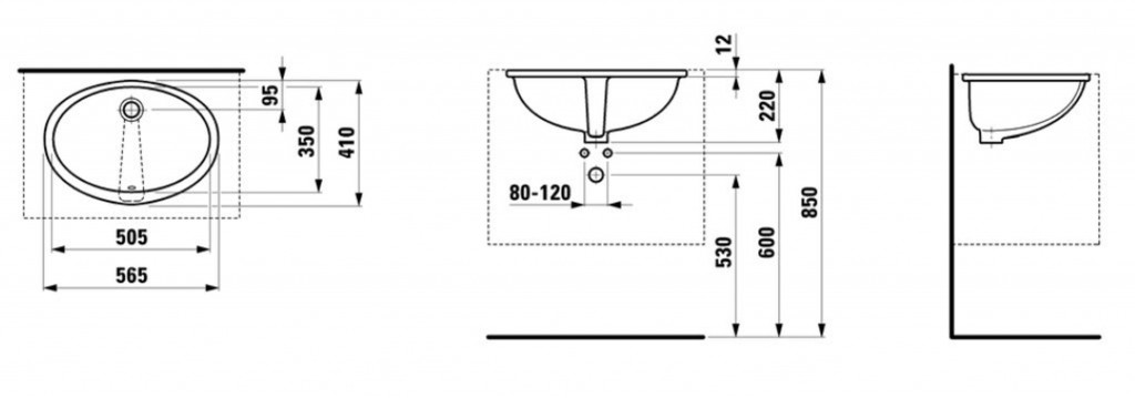 Vstavané umývadlo. Spodná časť nebrúsená.