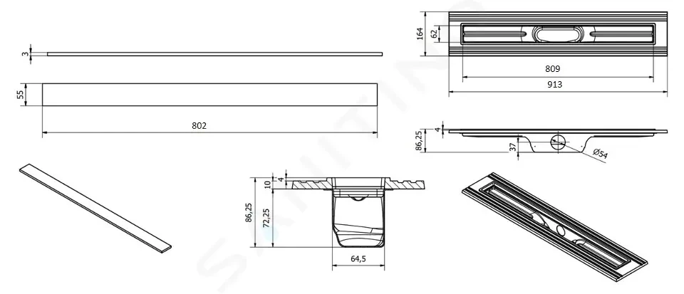 Sprchový žľab LIQUID Linear 85 vrátane roštu v rovnakej farbe farba roštu biela materiál roštu Solid Surface materiál žľabu nerezová oceľ materiál sifónu ABS plast pre použitie vo vnútri budov pre umiestnenie do priestoru líniový tvar stavebná dĺžka… (celý popis)