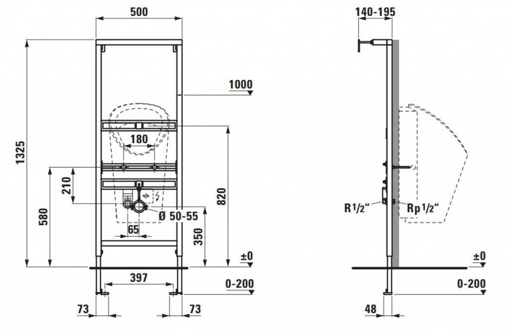 Predstenová inštalácia je kompatibilná s urinálmi Antero, Caprino Plus, Lema, Tamaro-S90, Tamaro-VS NEW, Val a bezvodými pisoármi Lema.
