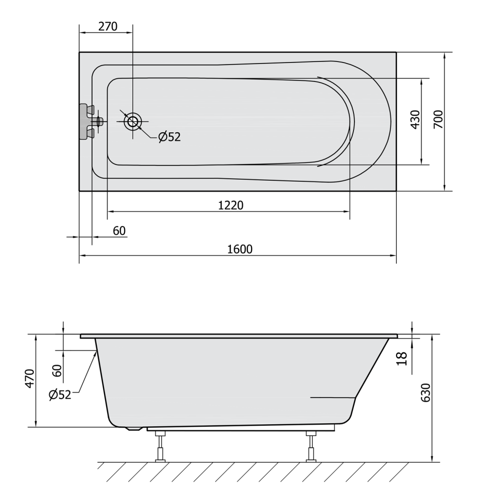 Vaňa má oproti štandardným vaniam výšku hrany okraja iba 18 mm. Pri obmurovanie tak pôsobí estetickejšie. Nemožno ju inštalovať s obkladovým panelom.