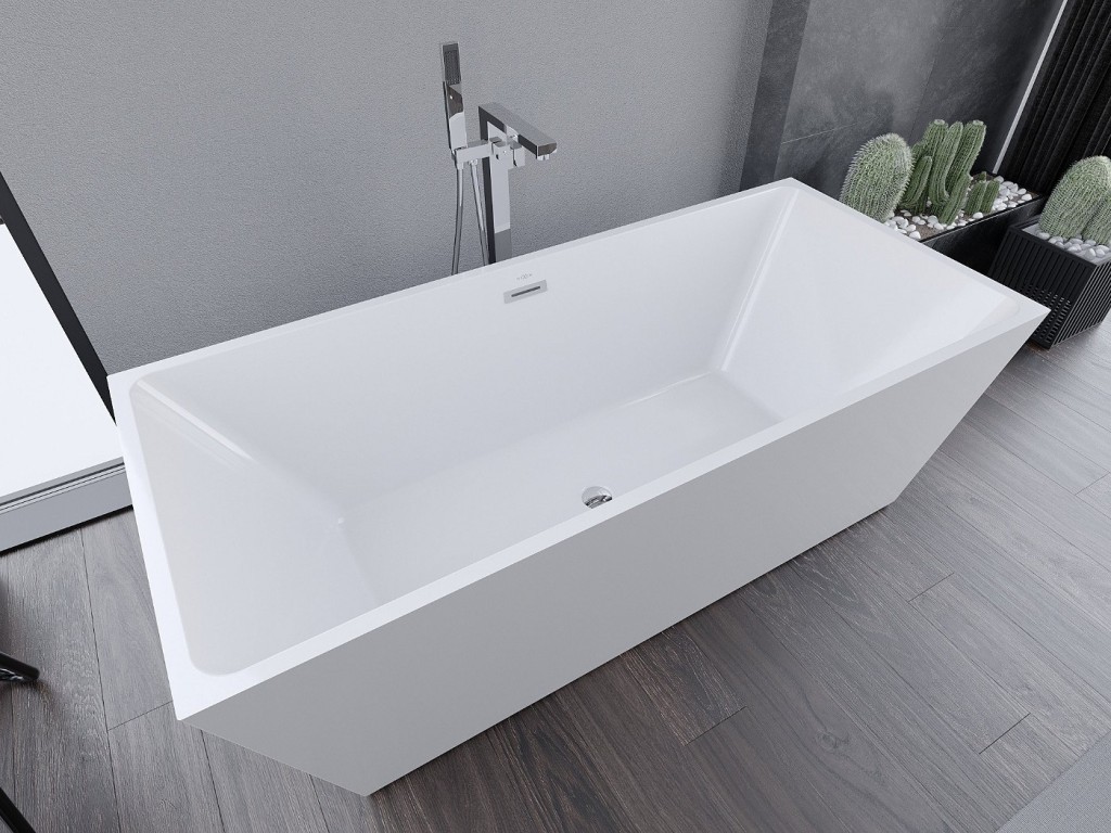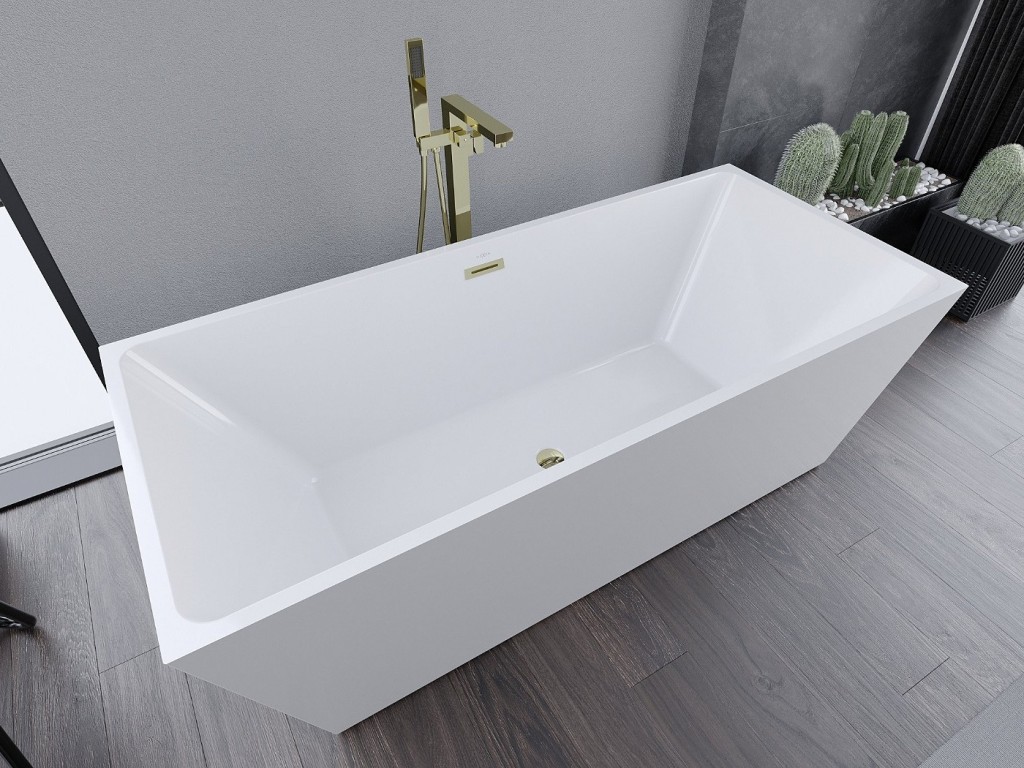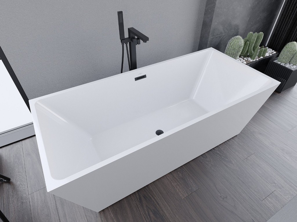 Voľne stojaca obdĺžniková akrylátová vaňa série LITA od výrobcu MEXEN s prepadom a umiestnenom odpade na stred vane.