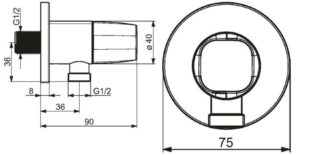 Nástenné kolienko pre pripojenie hadice sprchy, DN15