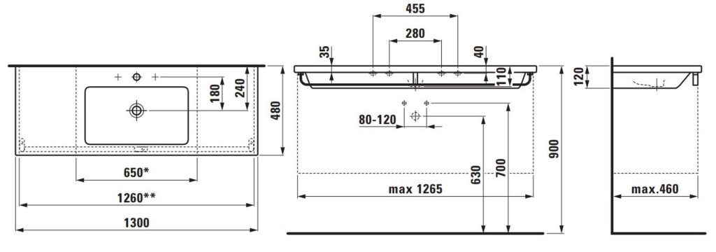 - sa 3 otvory pre umývadlovú batériu