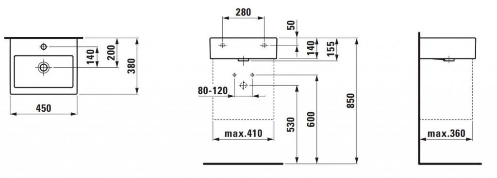 - s 1 otvorom pre umývadlovú batériu