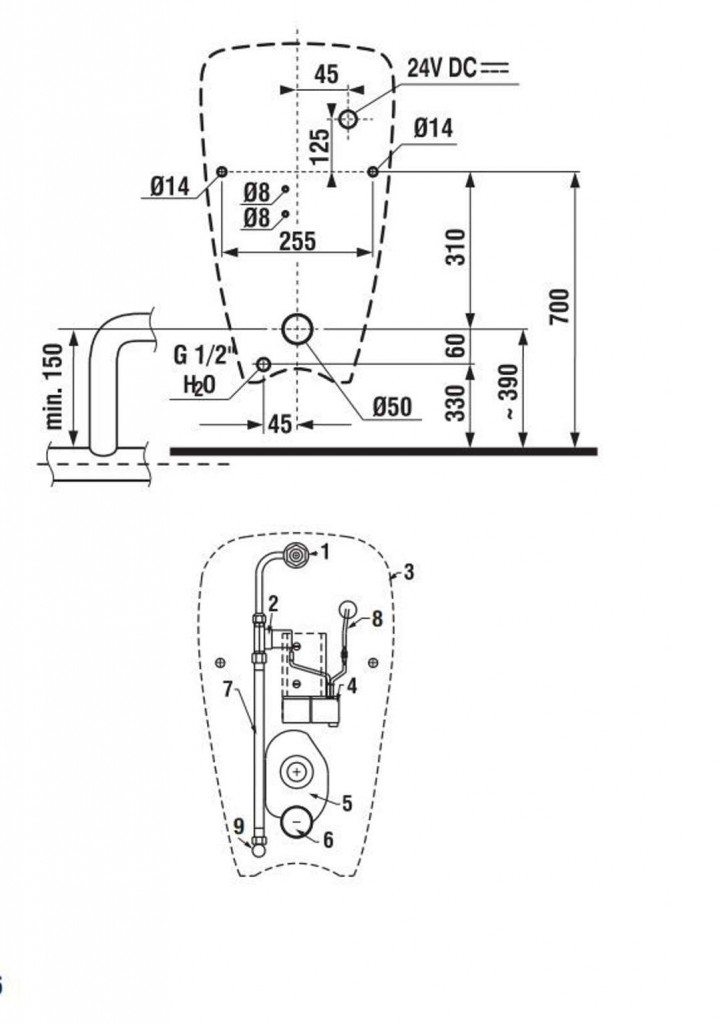 - keramický pisoár a radarovú elektroniku na montážnej lište - napájanie 24 V