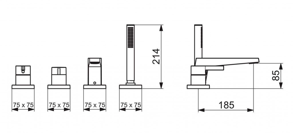- montáž: na základné teleso pre vaňové batérie so 4 štvorotvorovú inštaláciou