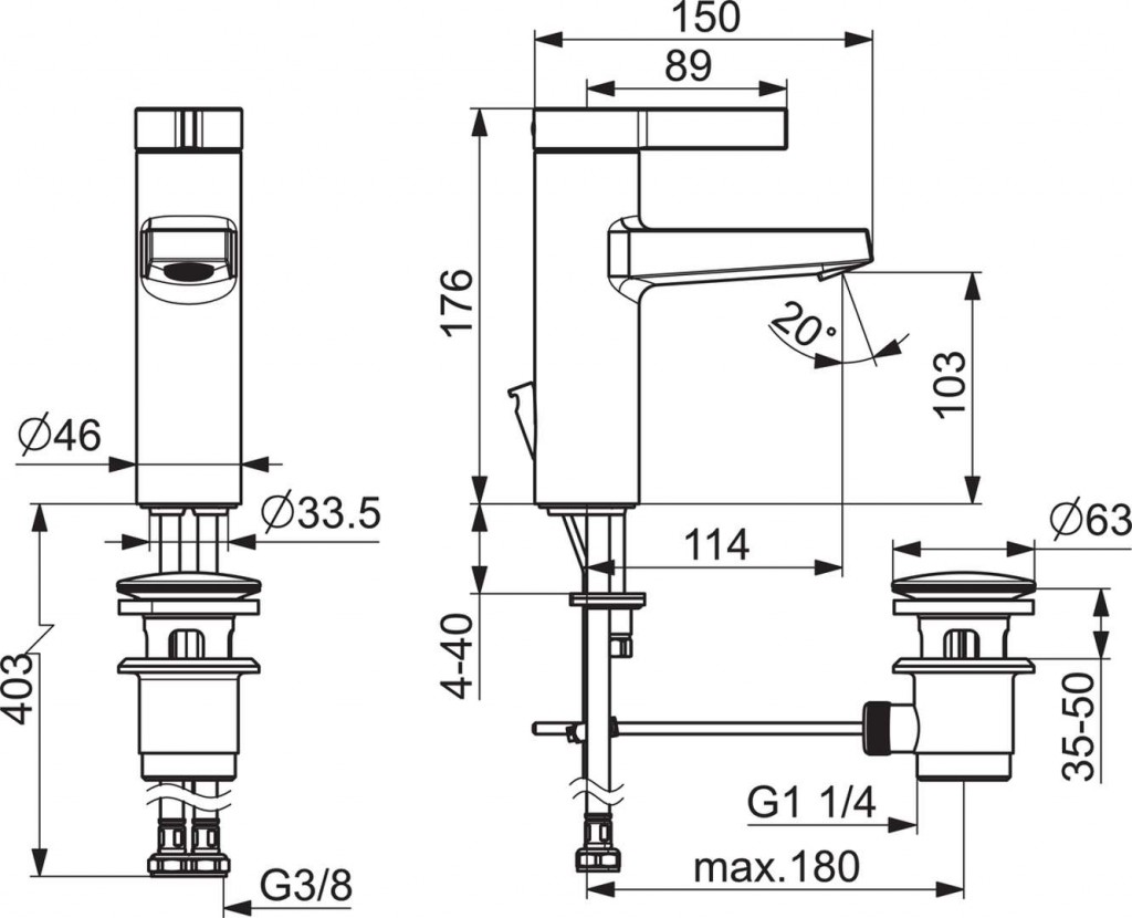 - pripojenie tlakovej hadice G 3/8