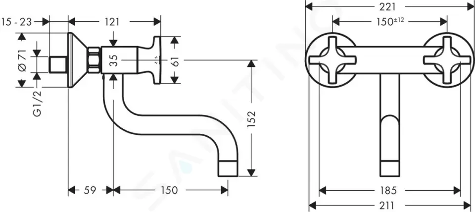 stredová vzdialenosť 150 ± 12 mm