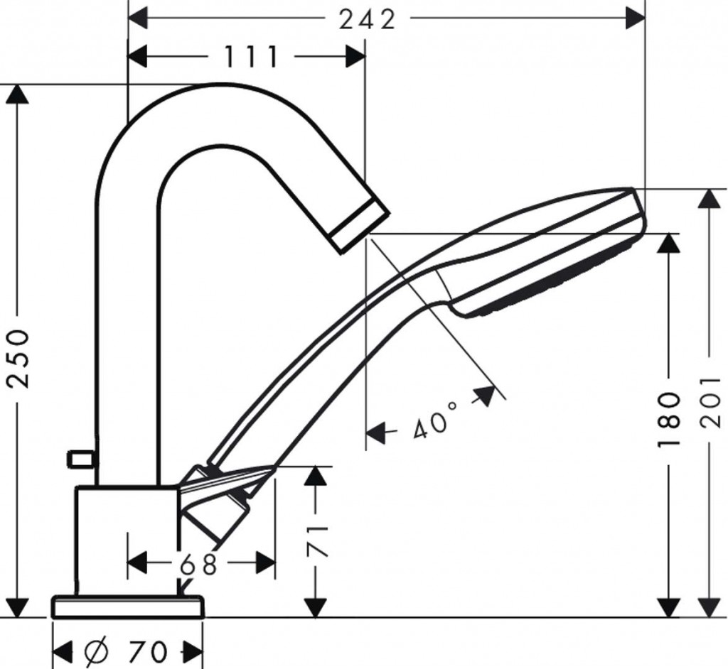- obsahuje: 3-otvorová páková armatúra na okraj vane, ručná sprcha, sprchová hadica, sprchový držiak