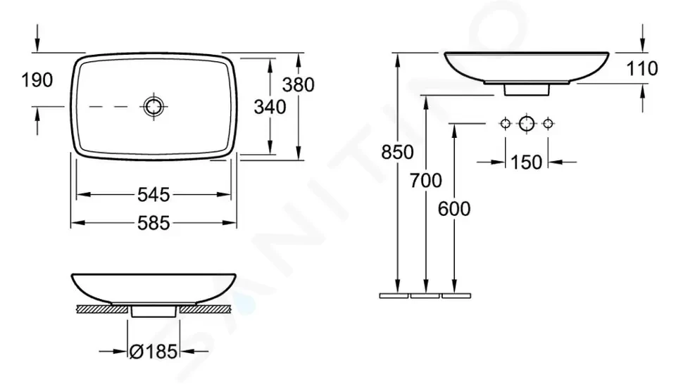 Umývadlo na postavenie na dosku alebo kúpeľňovú skrinku
