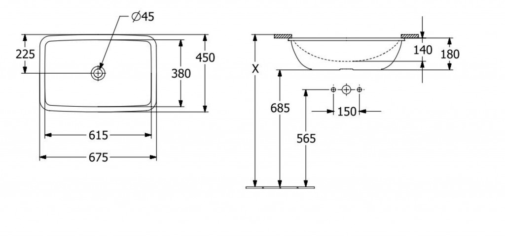 Obdĺžnikové umývadlo na zabudovanie zospodu